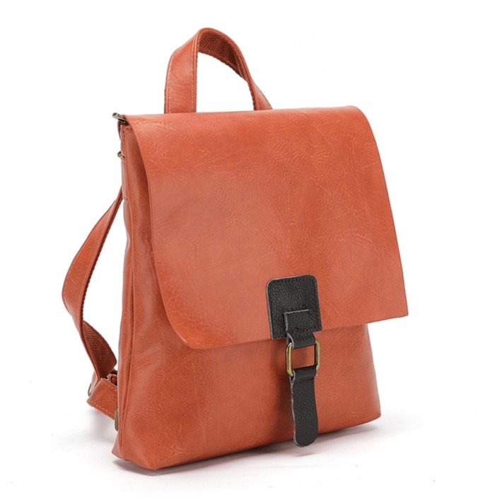 Γυναικεία Σακίδιο μεσαίο μέγεθος με καπάκι και ζωνάκι στο κλείσιμο . Διαστάσεις: Πλάτος 24 εκ. × Ύψος 27 εκ. × Πάτος 7 εκ.