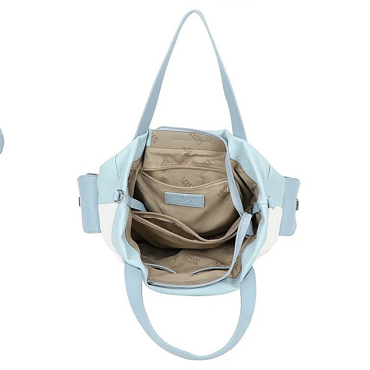 Γυναικεία Τσάντα Δερματίνη & Ψάθα Συνθ Coveri ώμου με 2χέρια .Πολλές τσέπες και διαχωριστικό εσωτερικά και εξωτερικά στην πίσω πλευρά φερμουάρ με τσέπη. Διαστάσεις: Πλάτος 36 εκ. × Ύψος 31 εκ. × Πάτος 14 εκ.