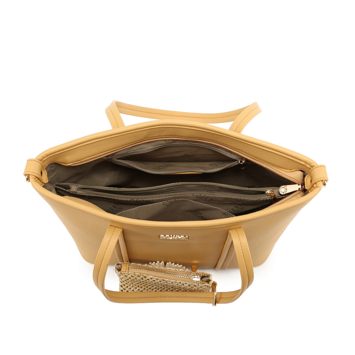 Γυναικεία Τσάντα Ώμου Δερματίνη Coveri με κρεμαστό πορτοφολάκι ψάθινο με μαργαρίτα . Διαστάσεις: Πλάτος 34 εκ. × Ύψος 22 εκ. × Πάτος 12 εκ.