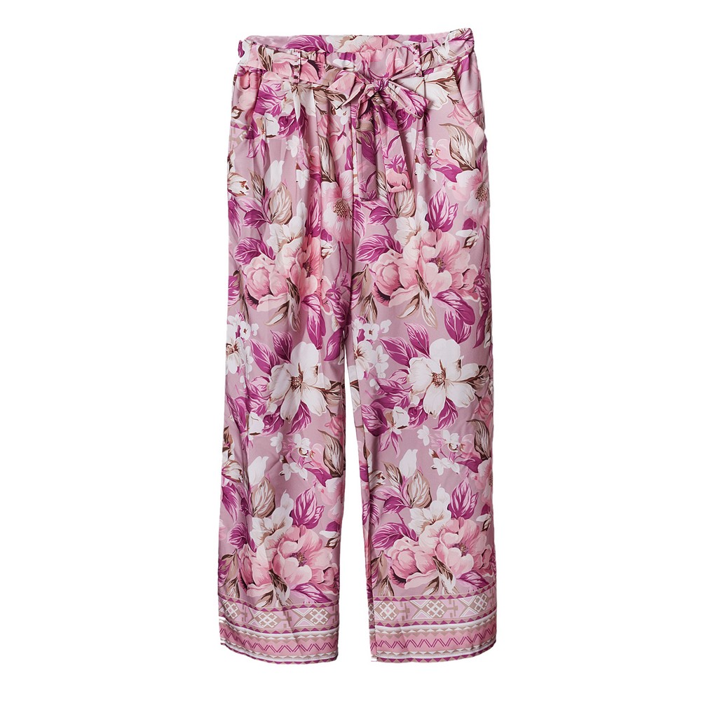 Γυναικεία Παντελόνα print με υφασμάτινη ζώνη και λάστιχο στην μέση.Σύνθεση: 100% πολυεστέρας