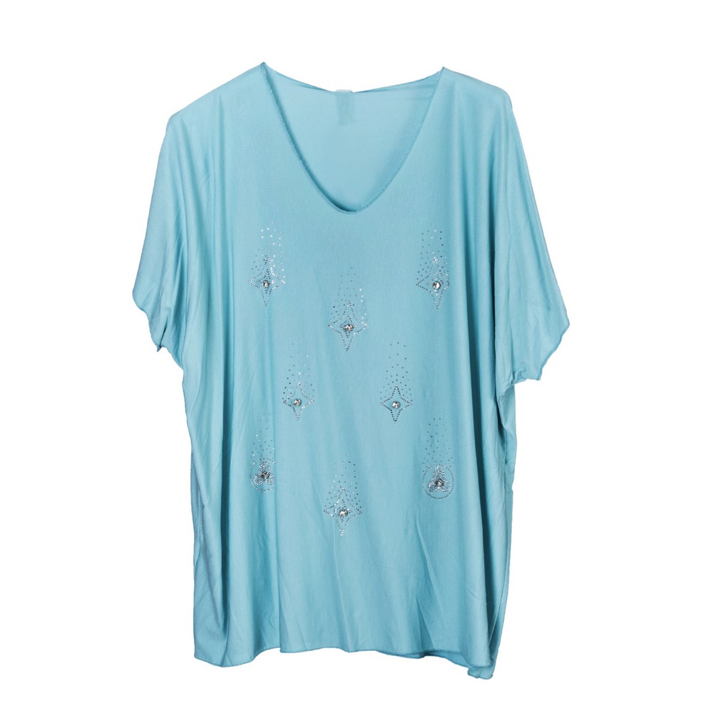 Γυναικεία Μπλούζα με αστέρια με στράς και βέ λαιμόκοψη. Σύνθεση: 95% βισκώζη / 5% ελαστίνη