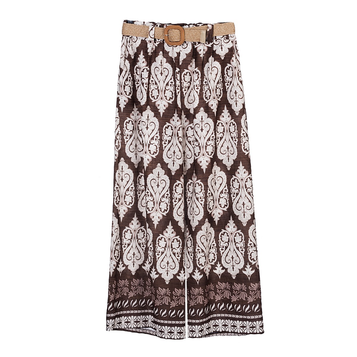 Γυναικεία Παντελόνα ζιπ κιλότ με λαχούρια και ψάθινη ζώνη .Σύνθεση: 50% λινό / 50% βαμβάκι