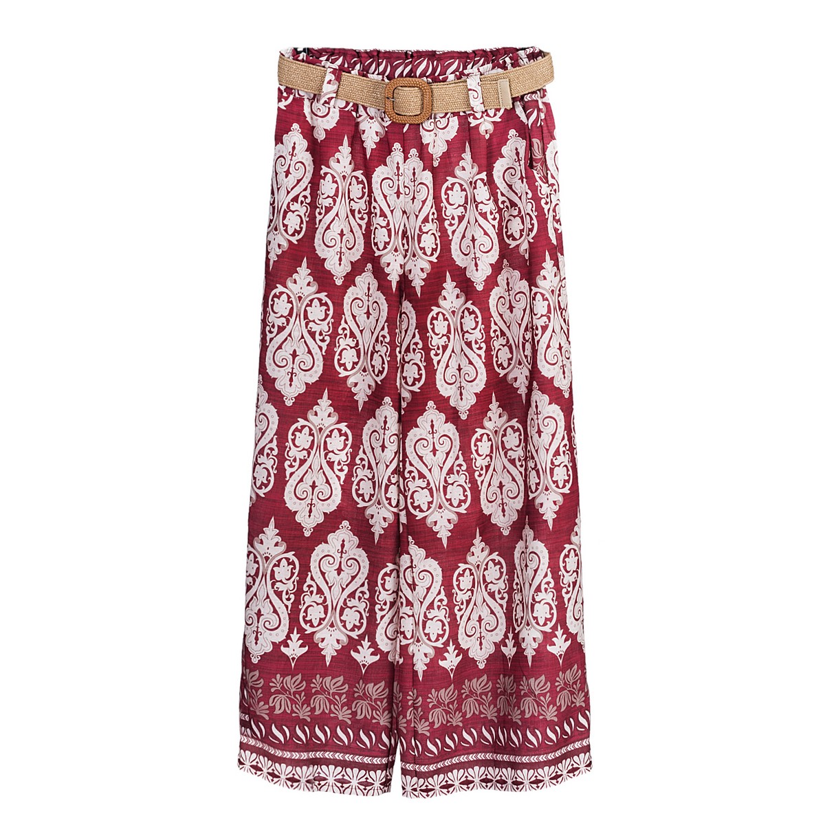 Γυναικεία Παντελόνα ζιπ κιλότ με λαχούρια και ψάθινη ζώνη .Σύνθεση: 50% λινό / 50% βαμβάκι