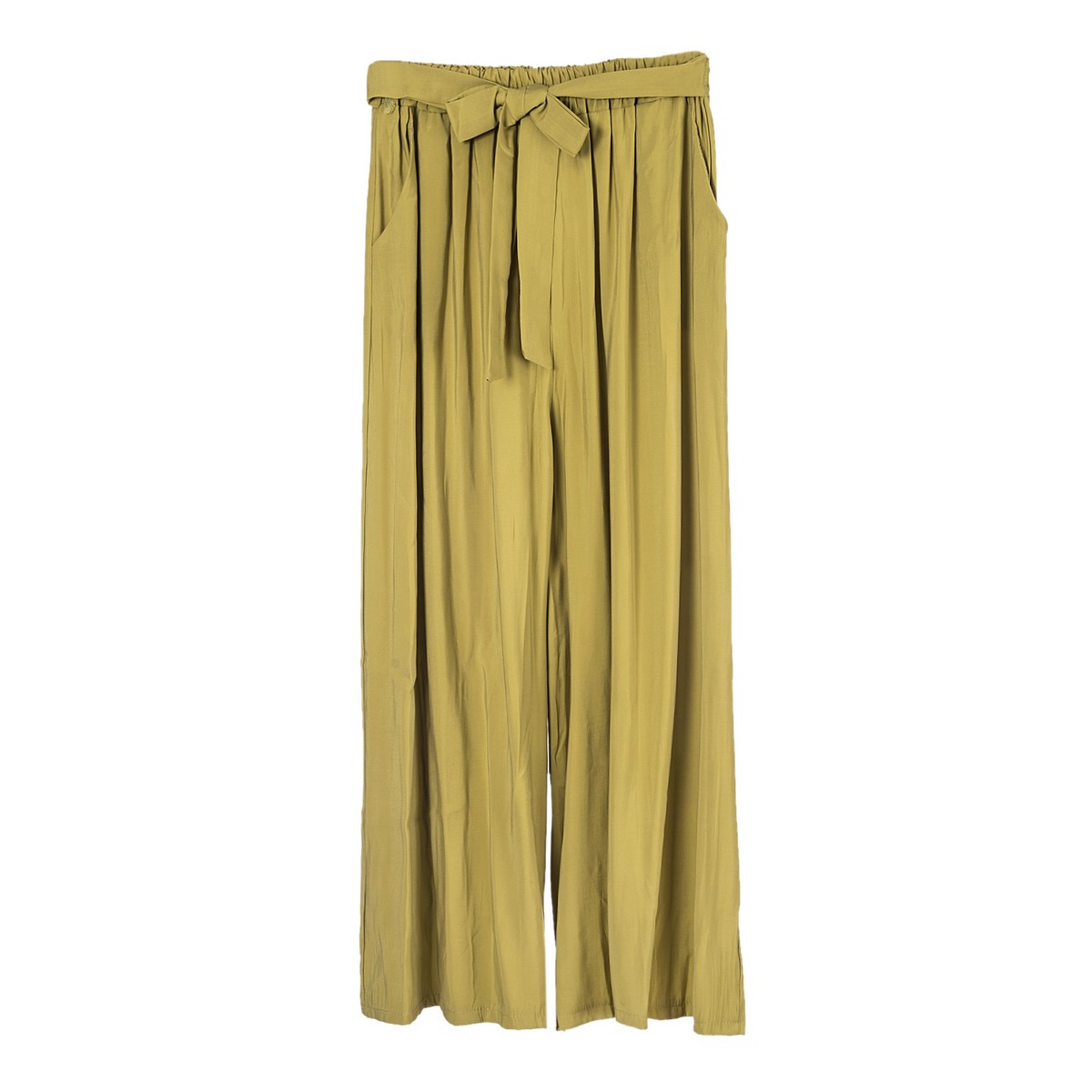 Γυναικεία Παντελόνα σε φαρδιά γραμμή με τσέπες λάστιχο στην μέση και ζώνη υφασμάτινη. Σύνθεση:87% βισκώζη / 13% πολυεστέρας