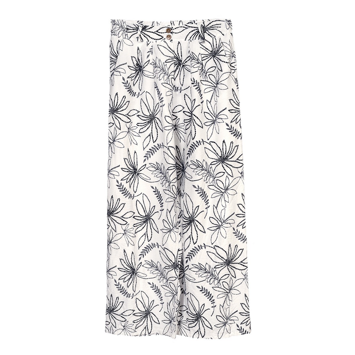 Γυναικεία Παντελόνα κεντητή με λάστιχο στην μέση,ξύλινα κουμπιά και τσέπες . Σύνθεση: 86% βισκώζη /14 % νάιλον