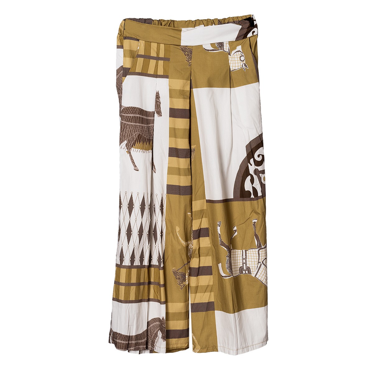 Γυναικεία Παντελόνα ζίπ κιλότ με πολύχρωμο μοτίβο,τσέπες και λάστιχο πίσω . Σύνθεση: 100% cotton