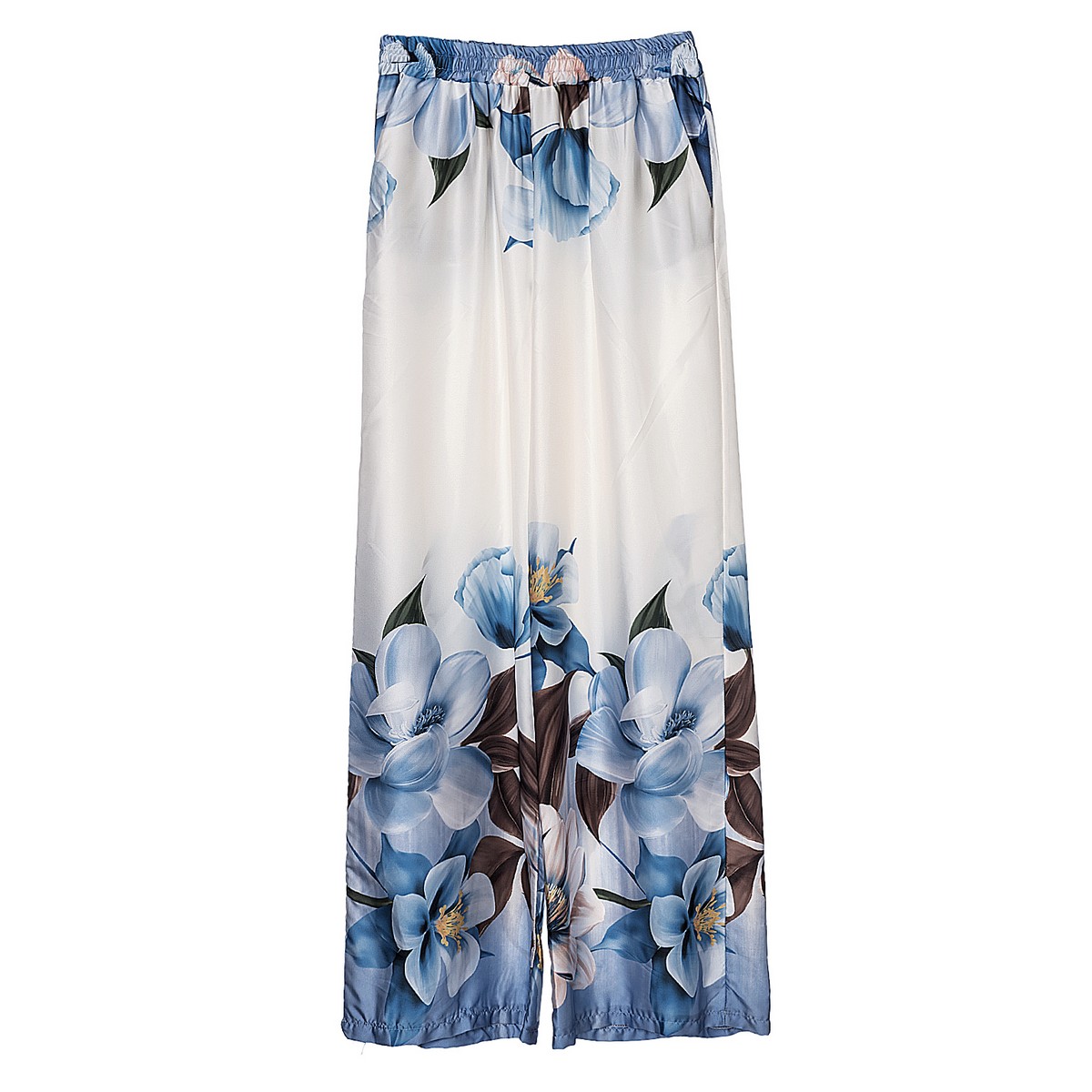 Γυναικεία Παντελόνα φλοράλ σατέν πολύχρωμη με λάστιχο στην μέση και τσέπες. Σύνθεση:97 % πολυεστέρας /3 % spandex