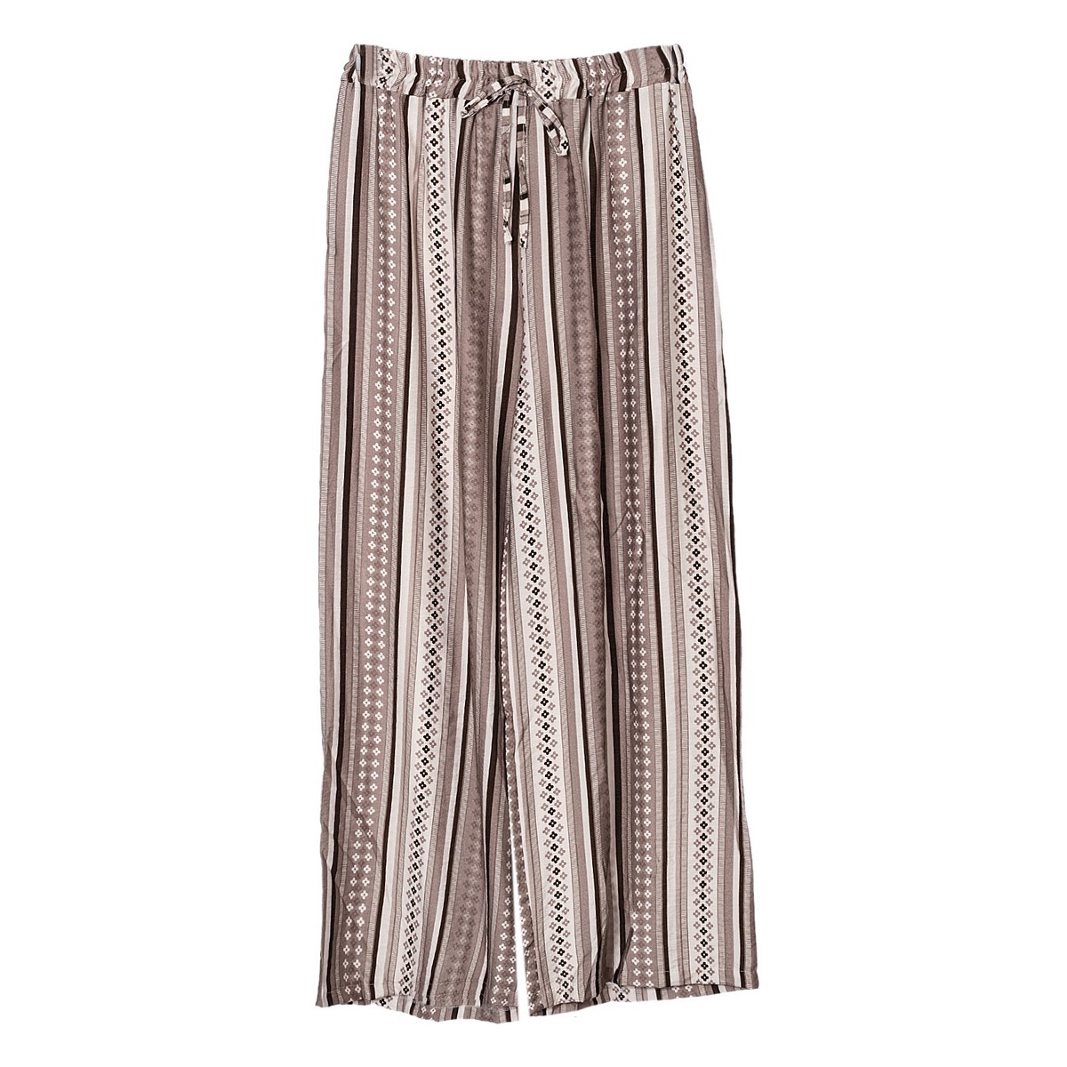 Γυναικεία Παντελόνα φαρδιά τρίχρωμη με κάθετες ρίγες και λουλούδια και λάστιχο στην μέση με κορδονάκι.Σύνθεση: 85% βισκώζη / 15% νάιλον