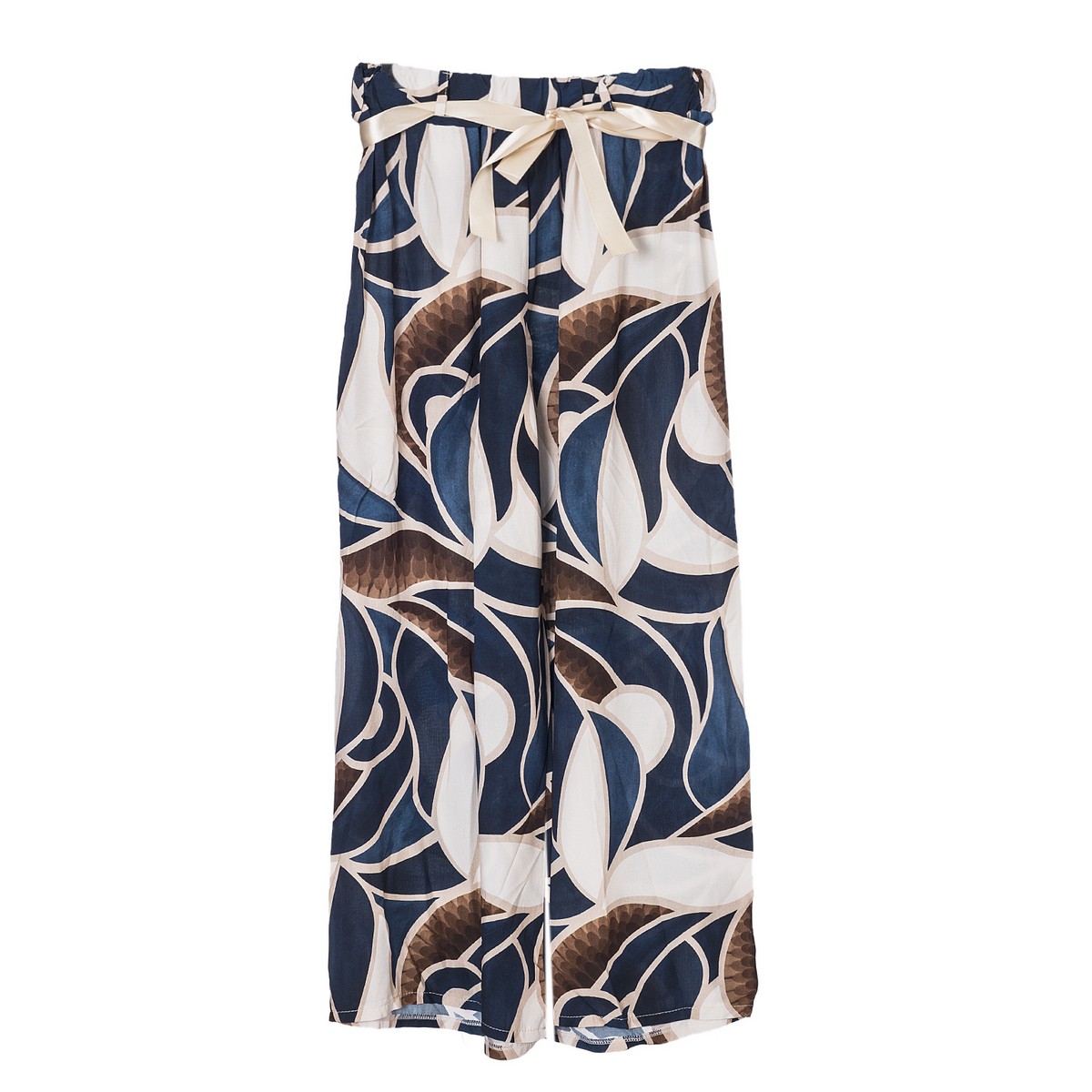 Γυναικεία παντελόνα με print .Λάστιχο στην μέση και ζώνη σατέν . Σύνθεση: 100% Βισκώζ