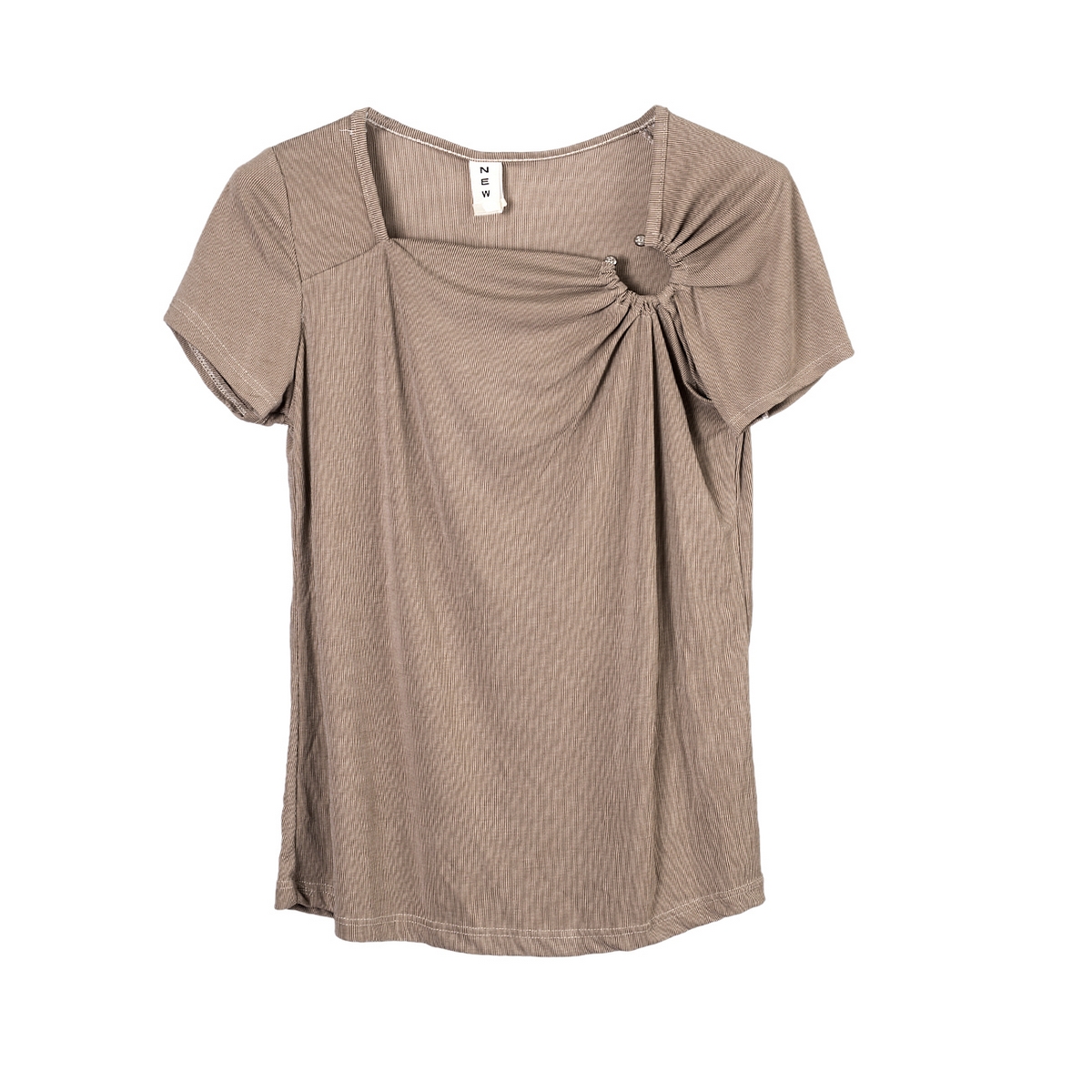 Γυναικεία Μπλούζα ελαστική με ασημένιο κρίκο στον ένα ώμο. Σύνθεση : 95% Βισκώζ / 5% Ελαστίνη