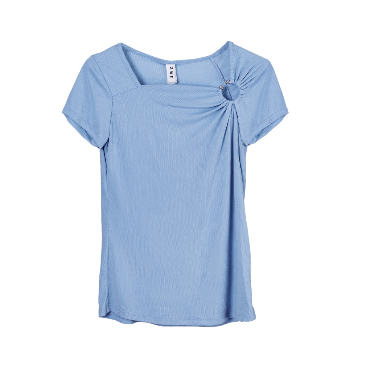 Γυναικεία Μπλούζα ελαστική με ασημένιο κρίκο στον ένα ώμο. Σύνθεση : 95% Βισκώζ / 5% Ελαστίνη