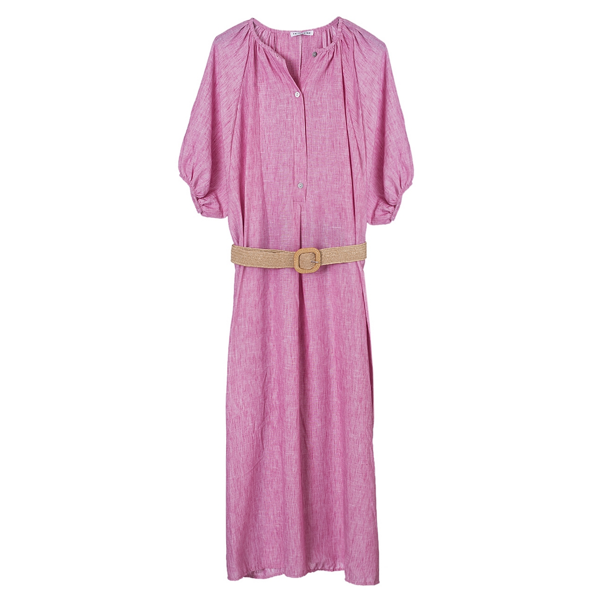 Γυναικείο Φόρεμα με baloon μανίκι και ψάθινη ζώνη . Σύνθεση : 100% Πολυεστέρας