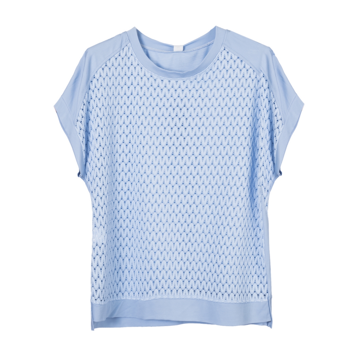 Γυναικεία μπλούζα με ζαπονέ μανίκι και πλεκτό μπροστά . Σύνθεση : 65% Βισκώζ / 30% Νάιλον / 5% Ελαστίνη
