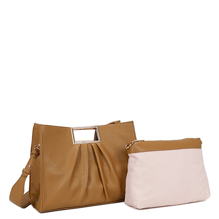 Τσάντα Δερματίνη χειρός πλισέ με αποσπώμενο νεσεσέρ εσωτερικά . Διαθέτει λουρί που αυξομειώνεται για χιαστί. Διάσταση:Πλάτος 33 Χ Ύψος 26 Χ Πάτος 15