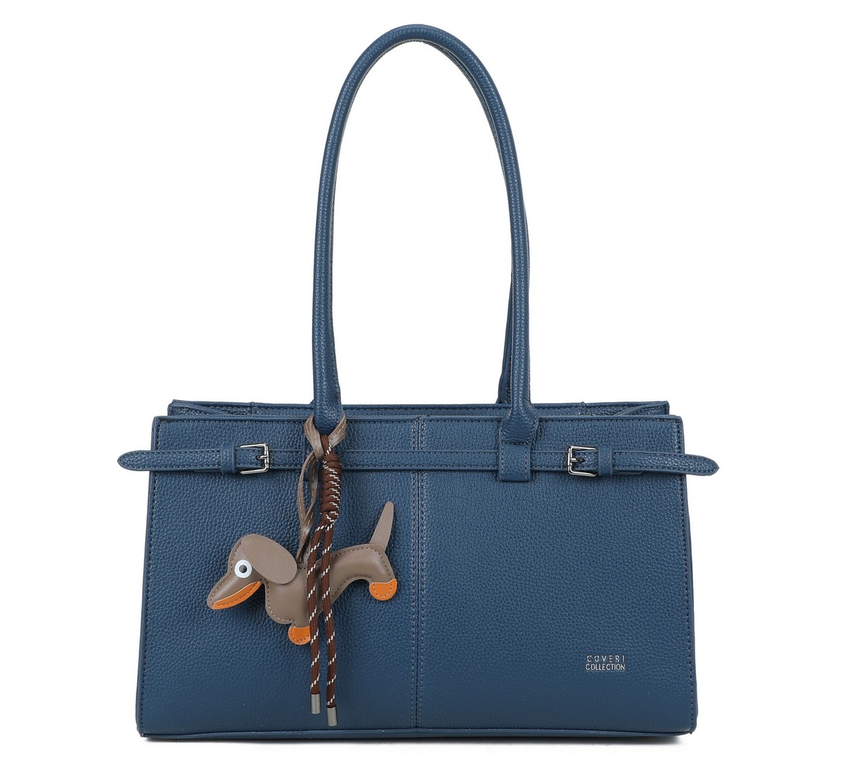 Τσάντα Δερματίνη Coveri μεγάλη ώμου ορθογώνια με δύο αγκράφες και διακοσμητικό κρεμαστό σκυλάκι. Διαθέτει τσέπες εσωτερικά, εξωτερικά στην πίσω πλευρά. Διαθέτει λουρί που αυξομειώνεται για χιαστί. Διάσταση: Πλάτος 36 Χ Ύψος 21Χ Πάτος 14