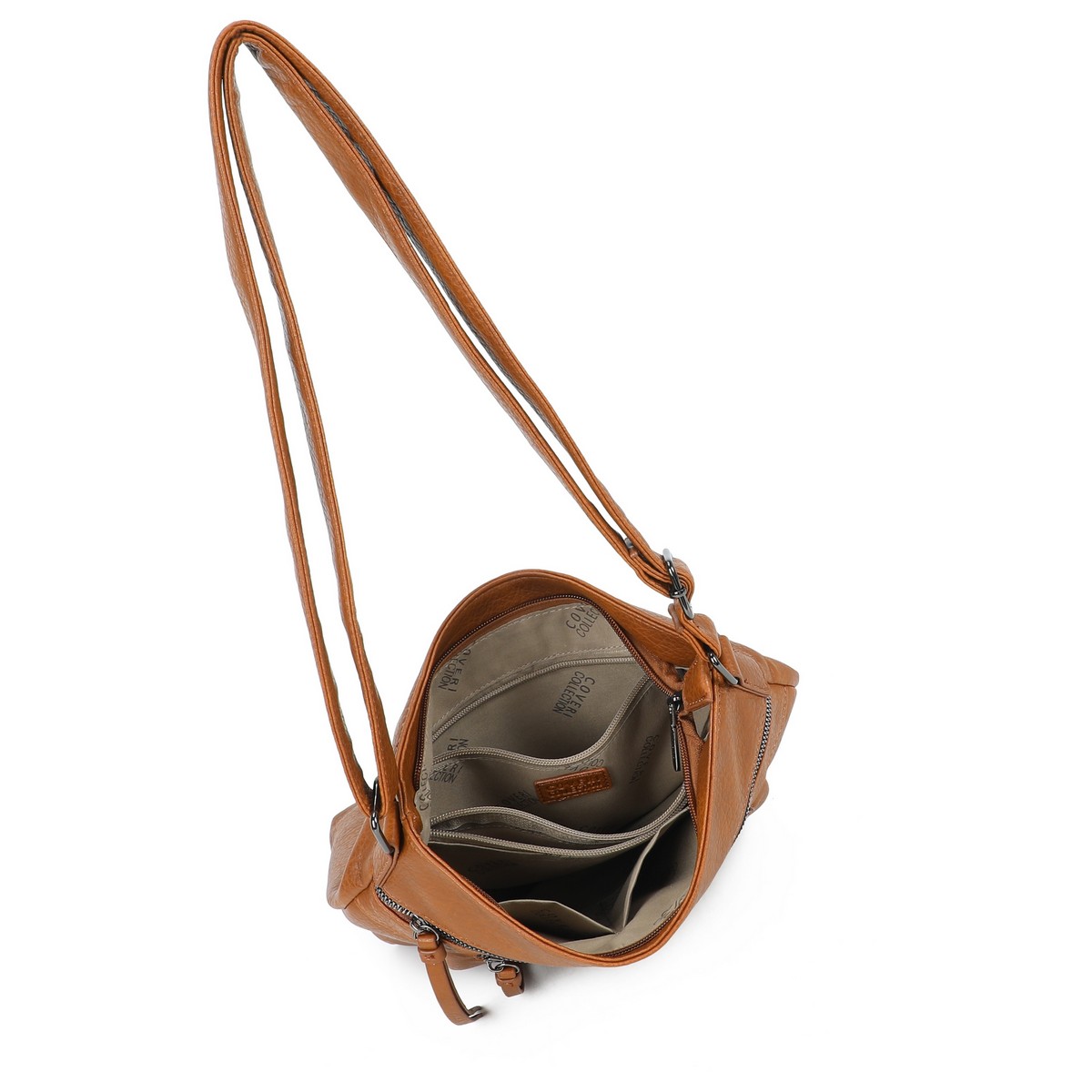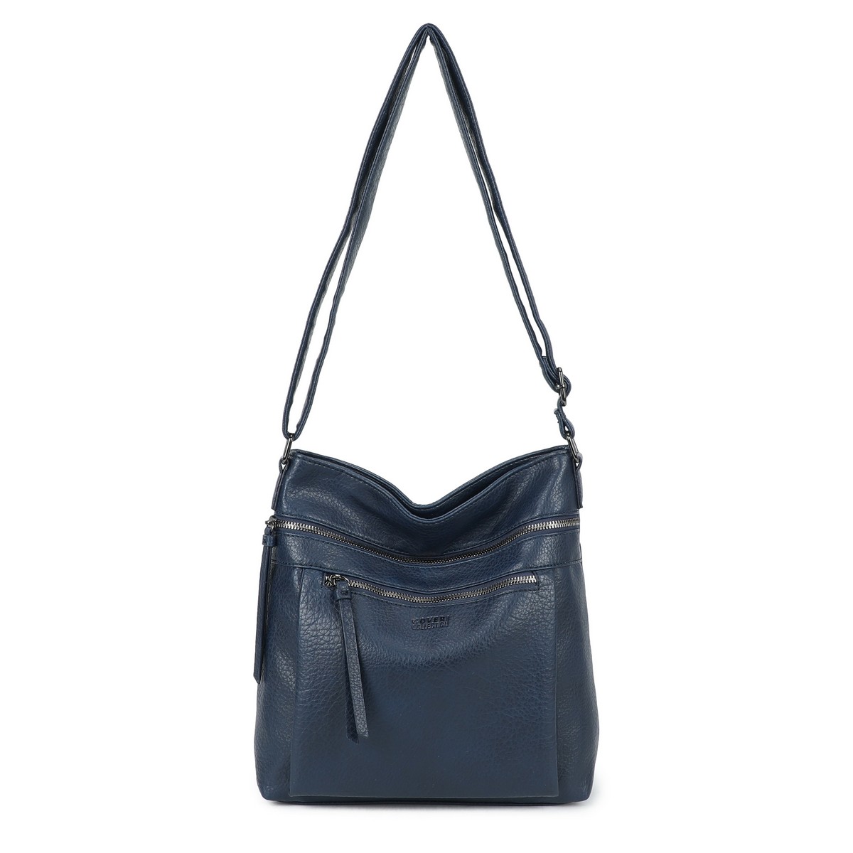 Τσάντα Δερματίνη Coveri χιαστί μεσαία με δύο τσέπες με φερμουάρ από μπροστά. Διαθέτει τσέπες εσωτερικά και εξωτερικά στην πίσω πλευρά. Διάσταση: Πλάτος 27 Χ Ύψος 19.5 Χ Πάτος 7.5