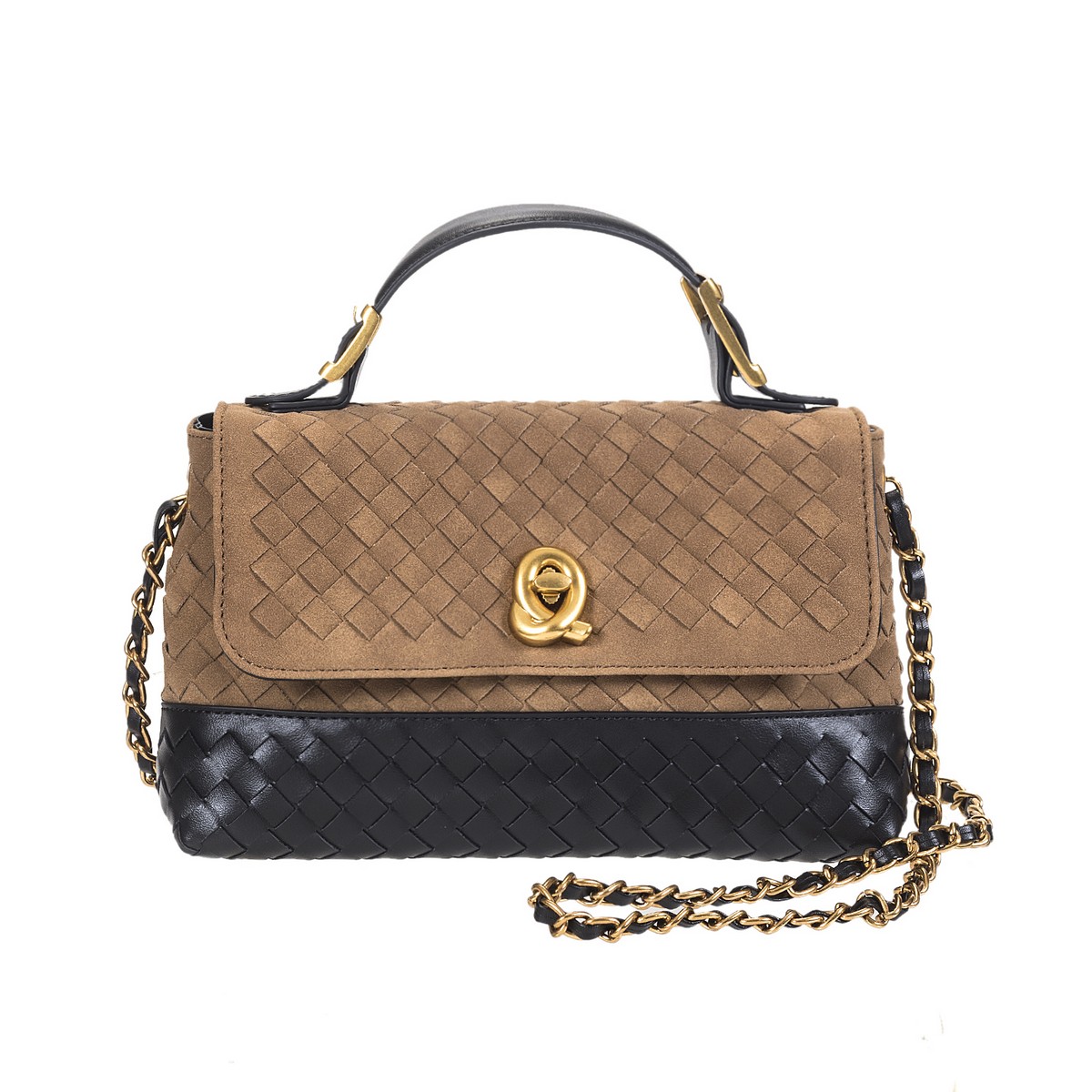 Γυναικεία τσάντα μεσάια δίχρωμη με καπάκι και αλυσίδα χειρός