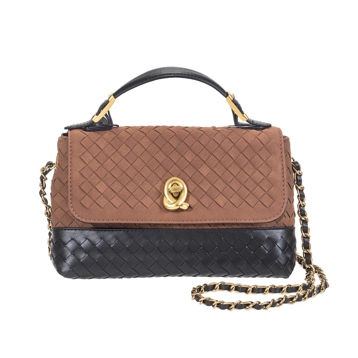 Γυναικεία τσάντα μεσάια δίχρωμη με καπάκι και αλυσίδα χειρός