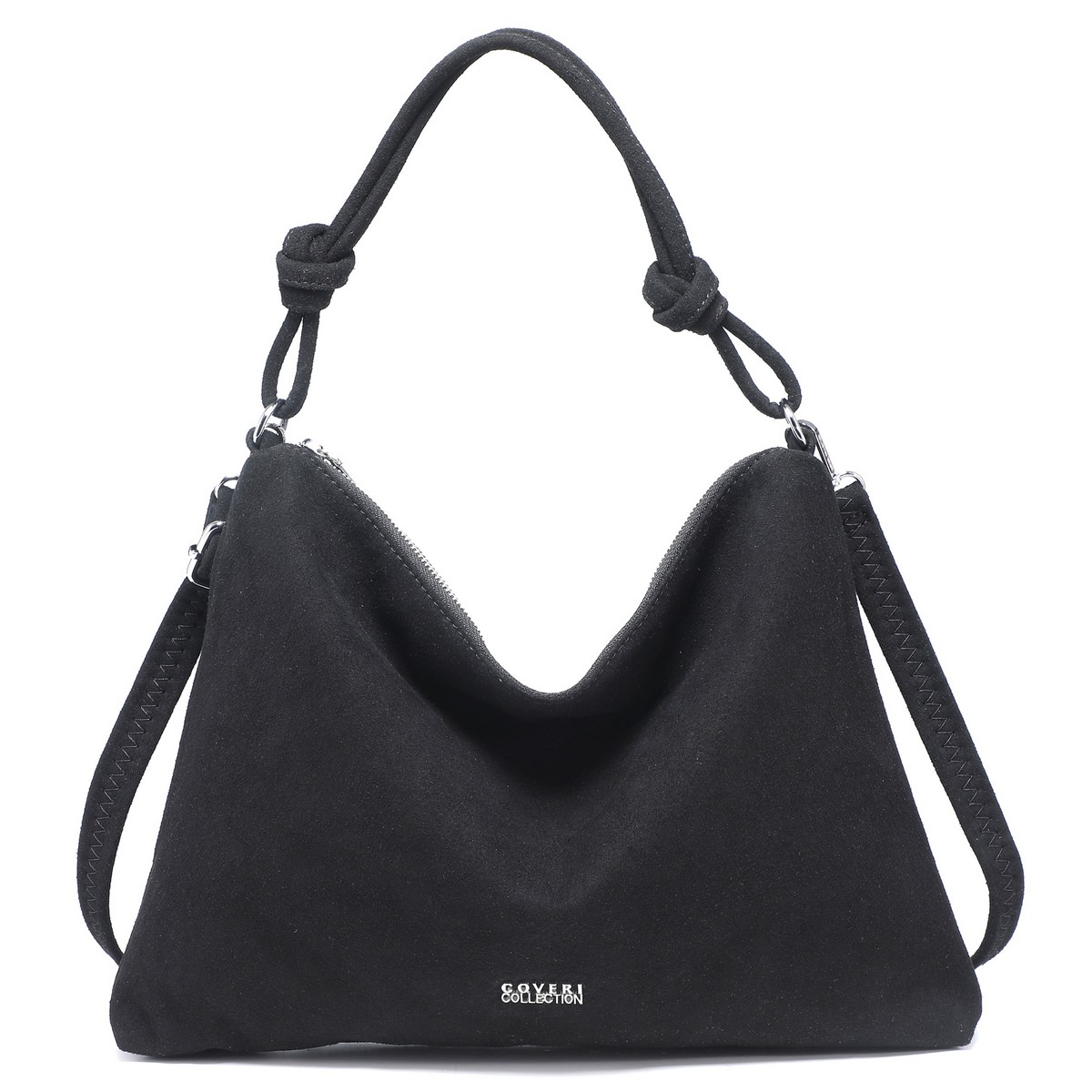 Γυναικεία Τσάντα Coveri σουέτ τύπου ώμου , διακοσμητικούς κόμπους στα χερούλια. Διαθέτει και εξωτερική τσέπη στο πίσω μέρος. Επιπλέον λουρί για χιαστί χρήση. Διαστάσεις: Πλάτος 35 × Ύψος 26 × Πάτος 5 εκ.