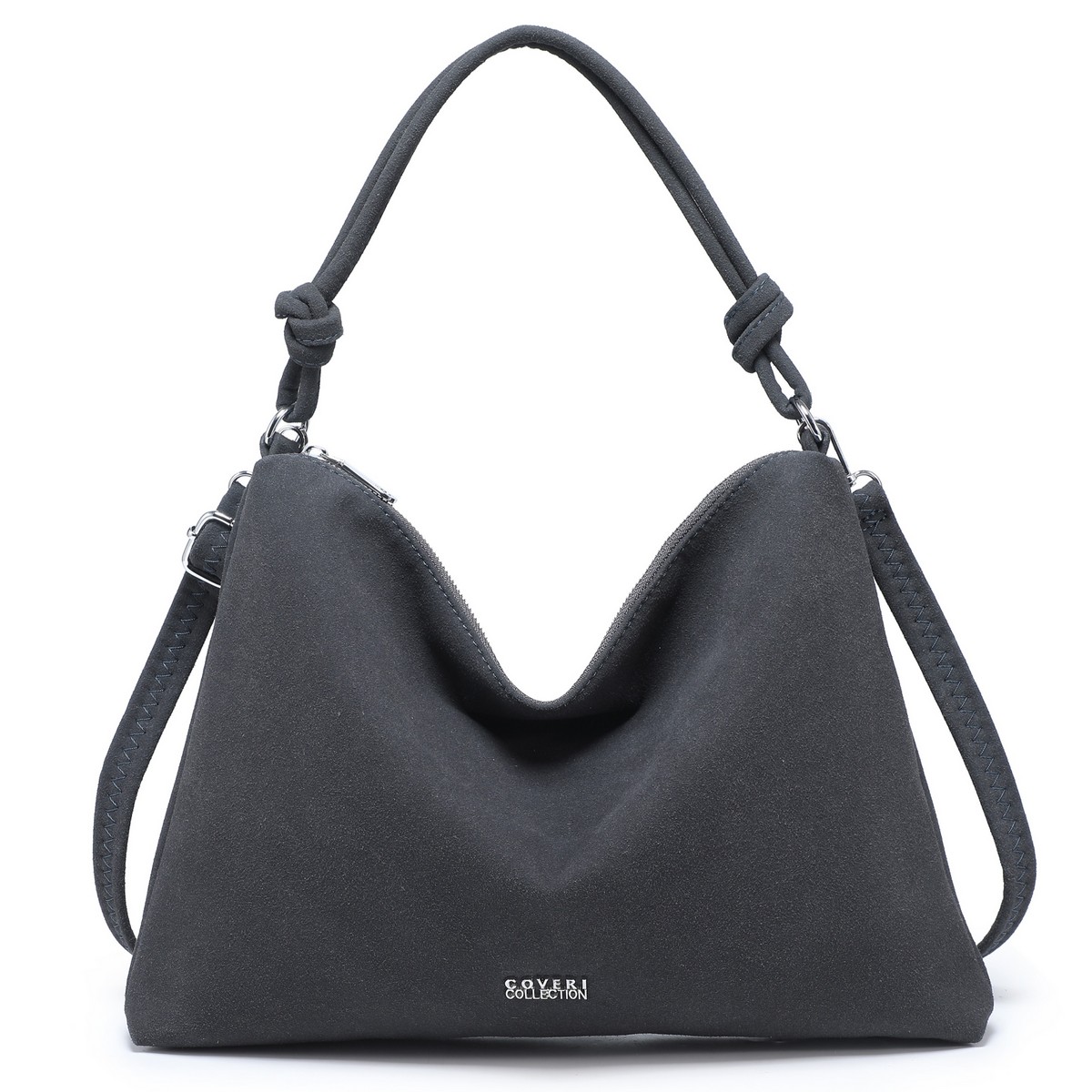 Γυναικεία Τσάντα Coveri σουέτ τύπου ώμου , διακοσμητικούς κόμπους στα χερούλια. Διαθέτει και εξωτερική τσέπη στο πίσω μέρος. Επιπλέον λουρί για χιαστί χρήση. Διαστάσεις: Πλάτος 35 × Ύψος 26 × Πάτος 5 εκ.