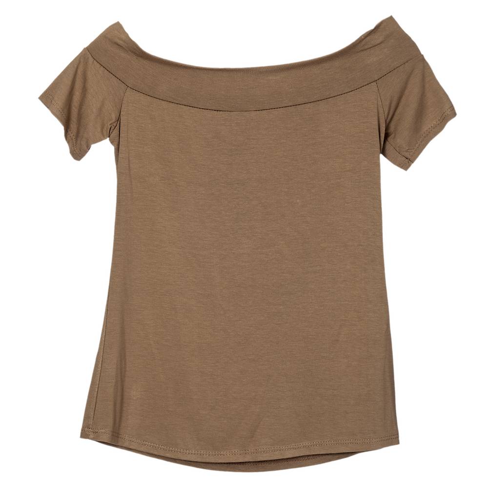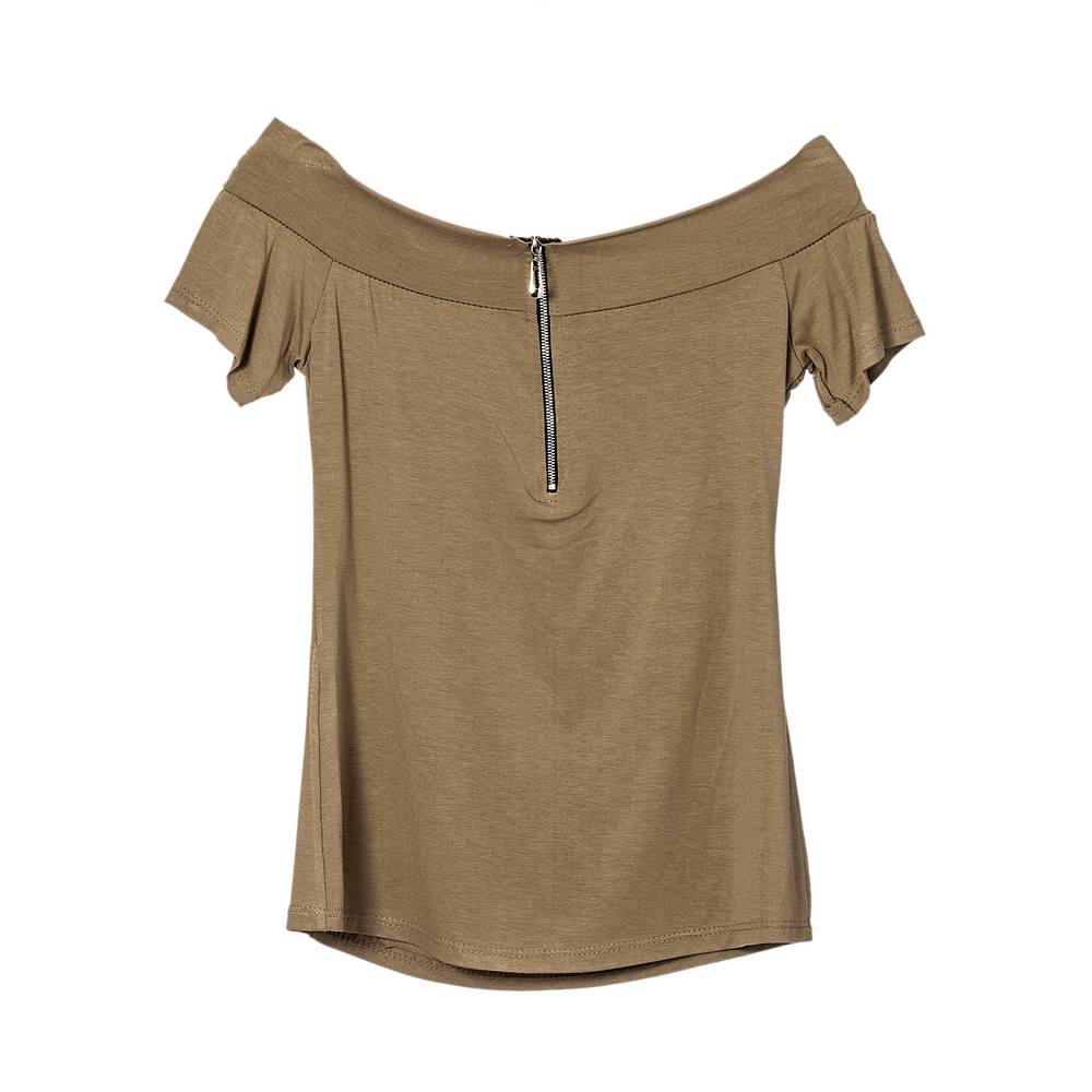 Μπλούζα βισκώζ off-shoulder κοντομάνικη με φερμουάρ που ανοίγει μπροστά. Σύνθεση: 95% Βισκώζ/5% ελαστίνη