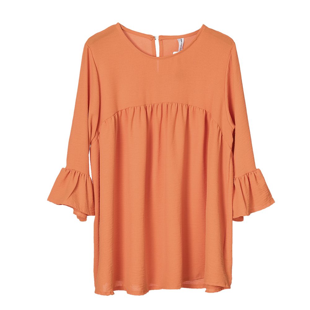 Γυναικεία Μπλούζα σε φαρδιά γραμμή με βολάν στα μανίκια . Σύνθεση: 70% πολυεστέρας / 25% βισκώζ / 5% ελαστίνη