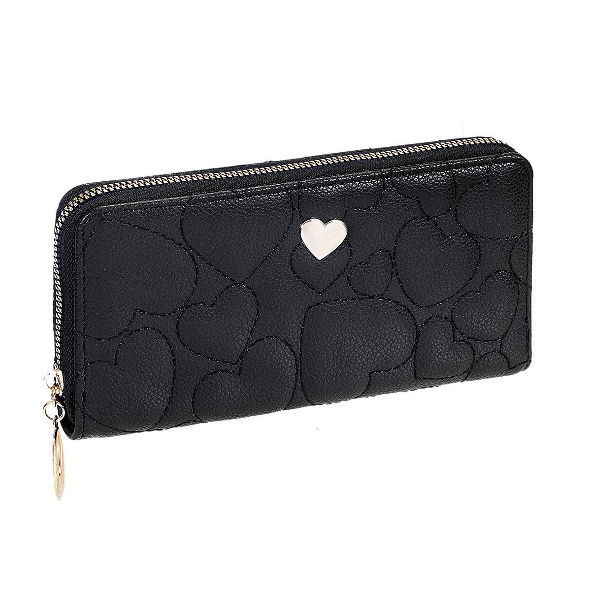 Πορτοφόλι γυναικείο μεγάλο μέγεθος δερματίνη καπιτονέ με καρδούλα και φερμουάρ . Διαθέτει εσωτερικά θήκες για κάρτες, ταυτότητα , χαρτονομίσματα και για κέρματα. Διάσταση: Πλάτος 20 Χ Ύψος 10.5