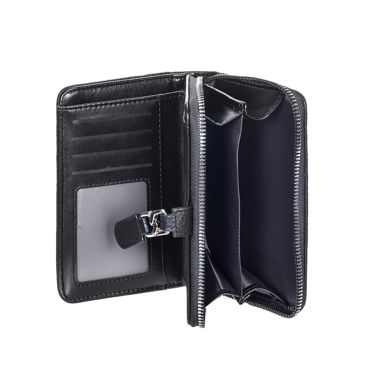 Πορτοφόλι γυναικείο μεσαίο μέγεθος δερματίνη με ζωνάκι αγκράφα και φερμουάρ. Διαθέτει εσωτερικά θήκες για κάρτες, ταυτότητα , χαρτονομίσματα και για κέρματα. Διάσταση: Πλάτος 15.5 Χ Ύψος 9.5