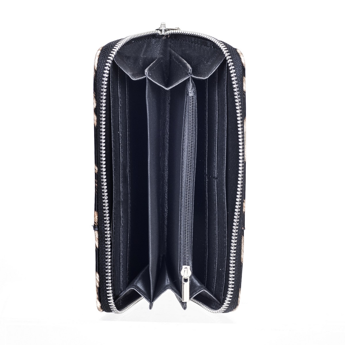 Πορτοφόλι γυναικείο μεγάλο λεοπάρ λουστρίνι με μεταλλική καρδιά . Διάσταση: Πλάτος 19 Χ Ύψος 10