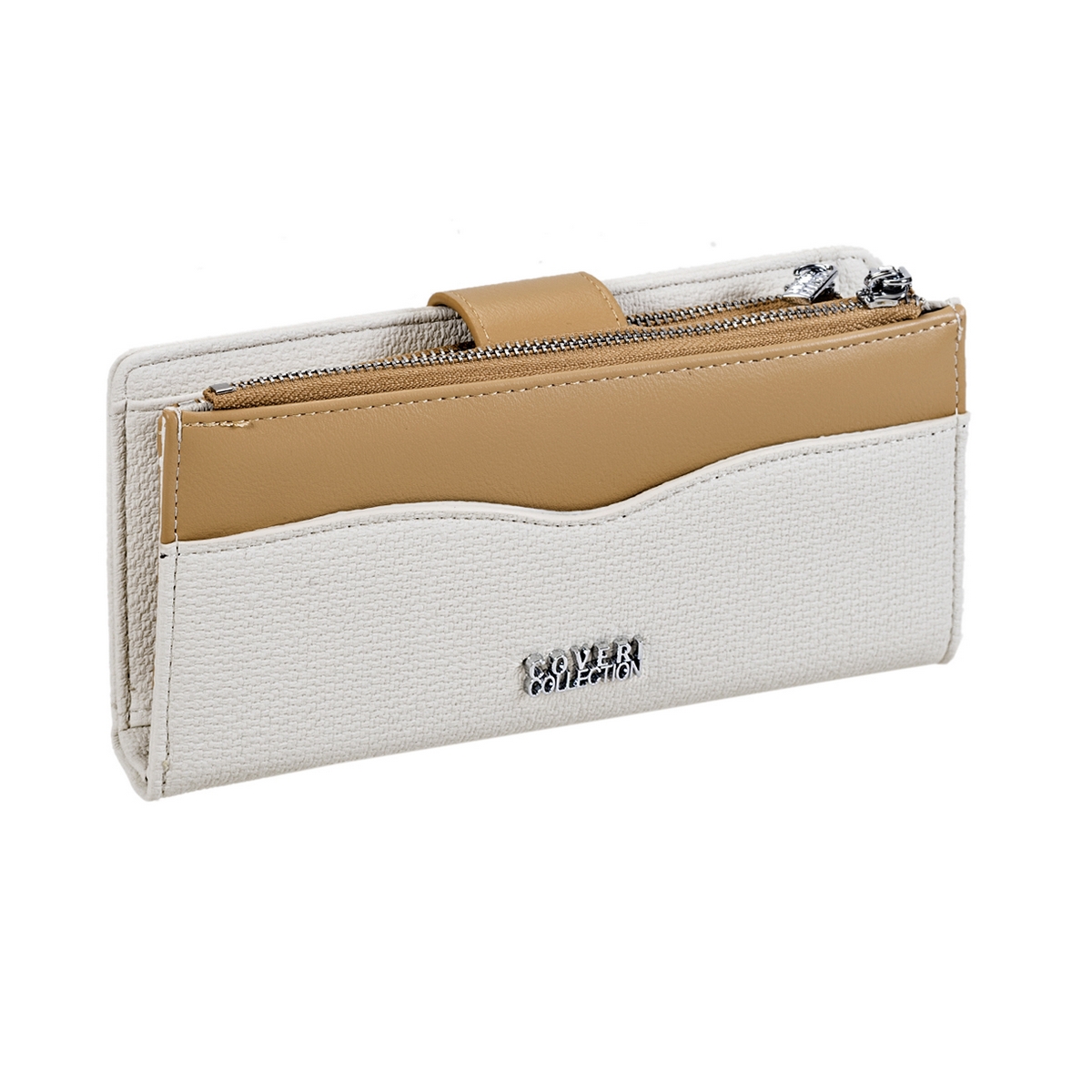 Πορτοφόλι γυναικείο Coveri μεγάλο μέγεθος δερματίνη με κυματιστό σχέδιο στο επάνω μέρος. Διαθέτει εσωτερικά θήκες για κάρτες, ταυτότητα , χαρτονομίσματα και για κέρματα. Διάσταση: Πλάτος 19 Χ Ύψος 10