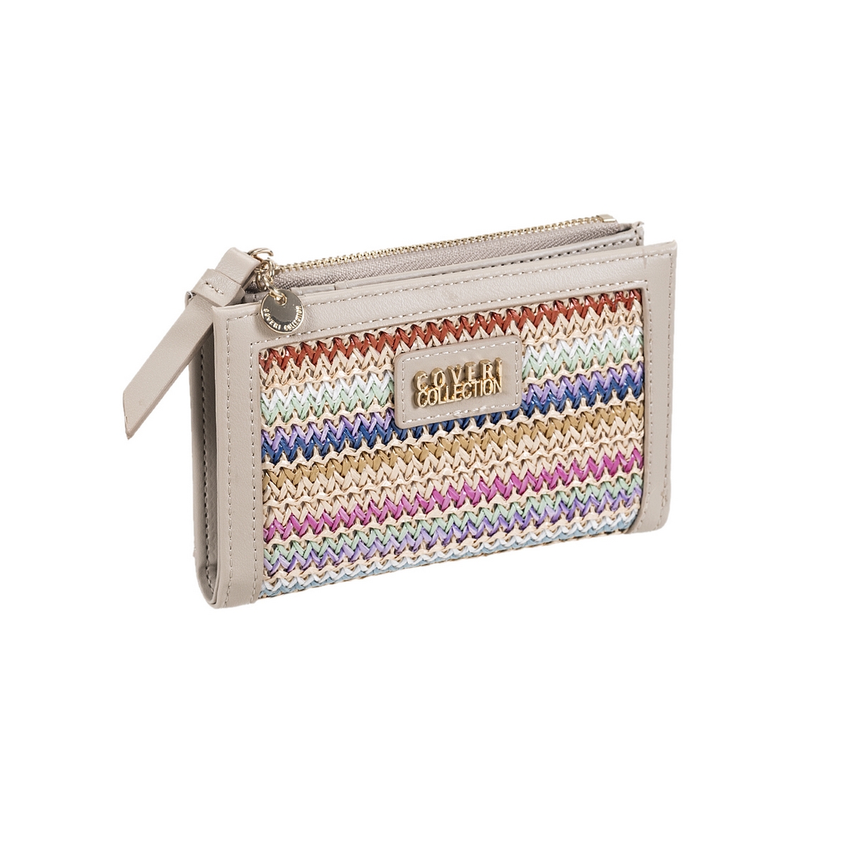Πορτοφόλι γυναικείο Coveri μεσαίο μέγεθος δερματίνη και συνθ.ψάθα. Διαθέτει εσωτερικά θήκες για κάρτες, ταυτότητα , χαρτονομίσματα και για κέρματα. Διάσταση: Πλάτος 14,5 Χ Ύψος 9