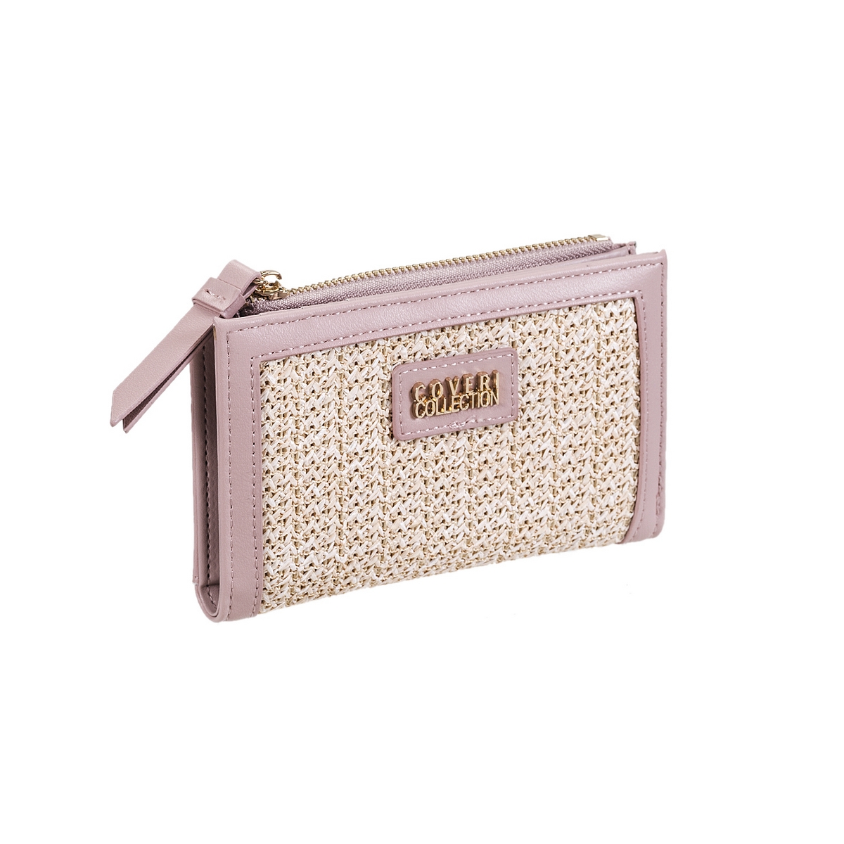 Πορτοφόλι γυναικείο Coveri μεσαίο μέγεθος δερματίνη και συνθ.ψάθα. Διαθέτει εσωτερικά θήκες για κάρτες, ταυτότητα , χαρτονομίσματα και για κέρματα. Διάσταση: Πλάτος 14,5 Χ Ύψος 9