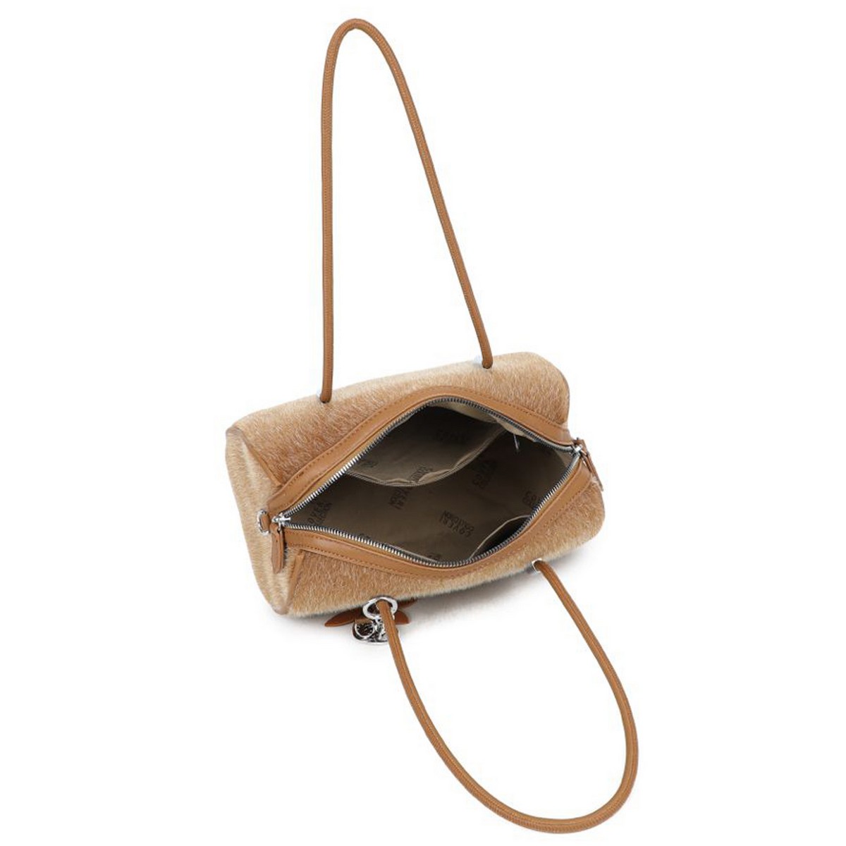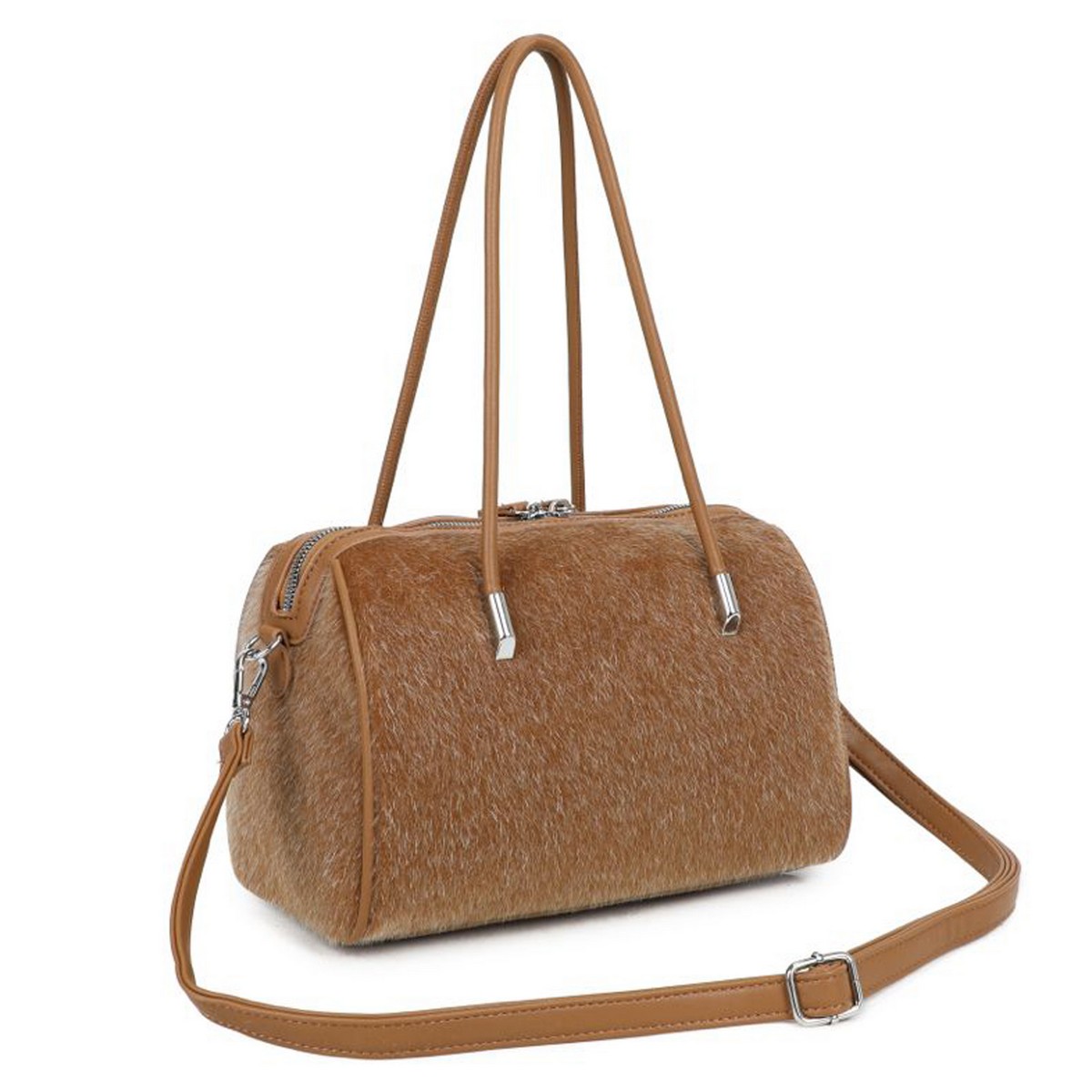 Γυναικεία Τσάντα Coveri με υφή suede-fur και διακοσμητικό charm λουλούδι.Με ρυθμιζόμενο λουρί για χρήση χιαστί ή ώμου.. Διαστάσεις: Πλάτος 29 × Ύψος 19 × Πάτος 16 εκ.
