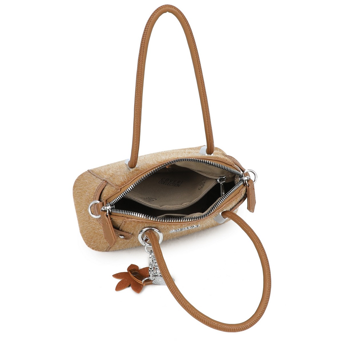 Γυναικεία Τσάντα Coveri με υφή suede-fur και διακοσμητικό charm λουλούδι. Διαθέτει εσωτερική επένδυση με φερμουάρ και βοηθητικές τσέπες. Με ρυθμιζόμενο λουρί για χρήση χιαστί ή ώμου.. Διαστάσεις: Πλάτος 21 × Ύψος 19 × Πάτος 10 εκ.