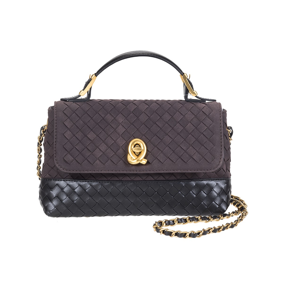 Γυναικεία τσάντα μεσάια δίχρωμη με καπάκι και αλυσίδα χειρός