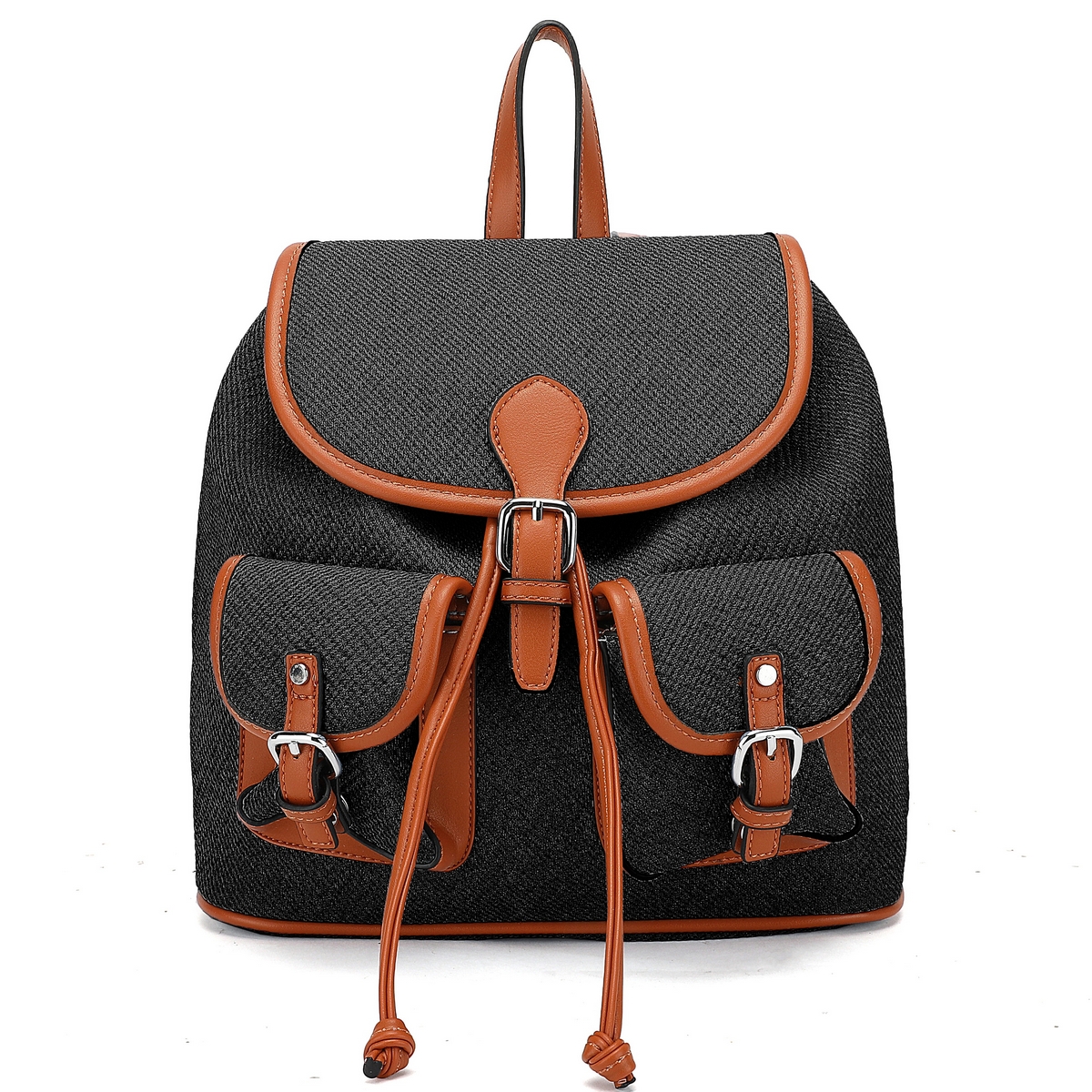 Γυναικεία Σακίδιο με καπάκι και δύο εξωτερικές τσέπες με ρέλι περίγραμμα .Διαθέτει επιπλέον λουρί για χρήση και ως χιαστί .Διαστάσεις: Πλάτος 28.5 εκ. × Ύψος 28 εκ. × Πάτος 14 εκ.