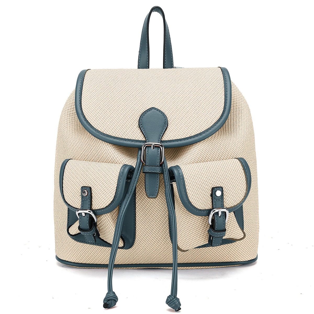 Γυναικεία Σακίδιο με καπάκι και δύο εξωτερικές τσέπες με ρέλι περίγραμμα .Διαθέτει επιπλέον λουρί για χρήση και ως χιαστί .Διαστάσεις: Πλάτος 28.5 εκ. × Ύψος 28 εκ. × Πάτος 14 εκ.