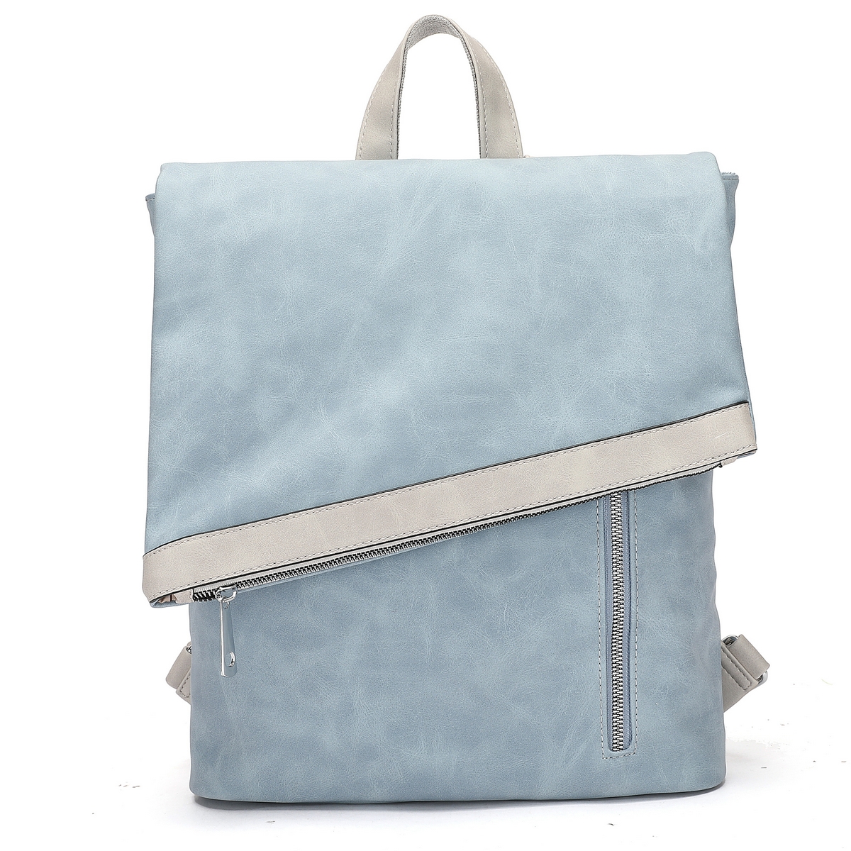 Γυναικεία Σακίδιο δίχρωμο με λοξό καπάκι και εξωτερικό φερμουάρ .Διαστάσεις: Πλάτος 30 εκ. × Ύψος 34 εκ. × Πάτος 9 εκ.