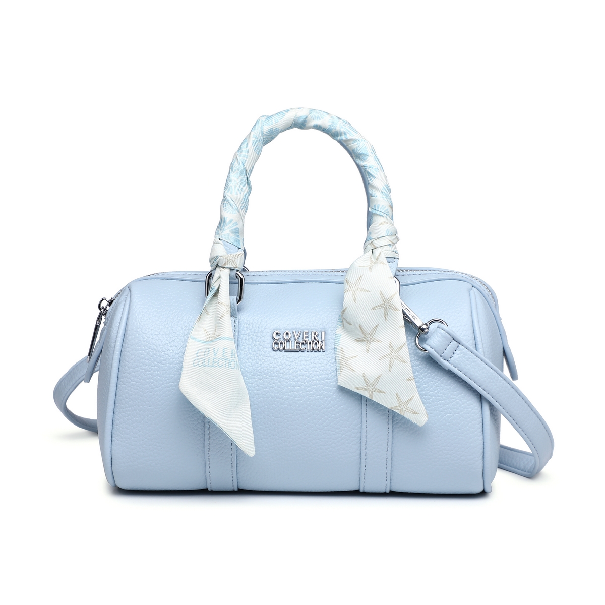 Γυναικεία Τσάντα Δερματίνη Coveri χεριόυ βαρελάκι με διακοσμητικό μαντήλι λουλούδια .Διαστάσεις: Πλάτος 24εκ. × Ύψος 14εκ. × Πάτος 10 εκ.