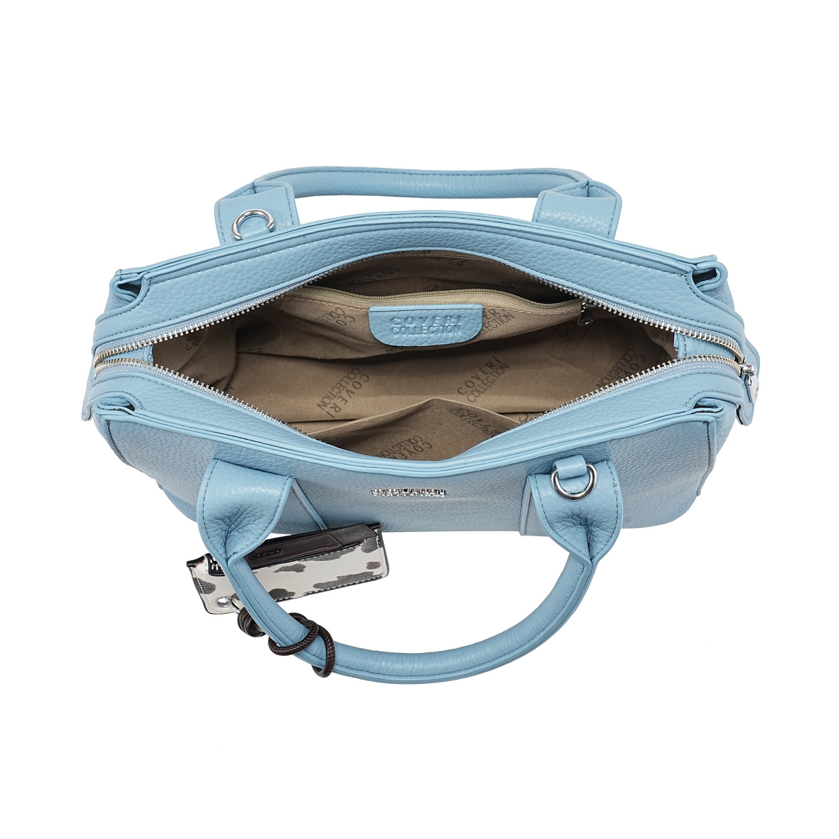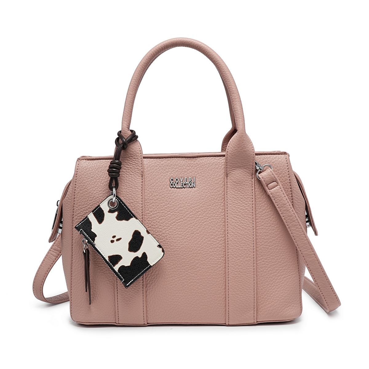 Γυναικεία Τσάντα Δερματίνη Coveri τετράγωνη με δύο χερούλια και πορτοφολάκι animal print αγελάδιτσα. . Διαστάσεις: Πλάτος 30 εκ. × Ύψος 22εκ. × Πάτος 11 εκ.