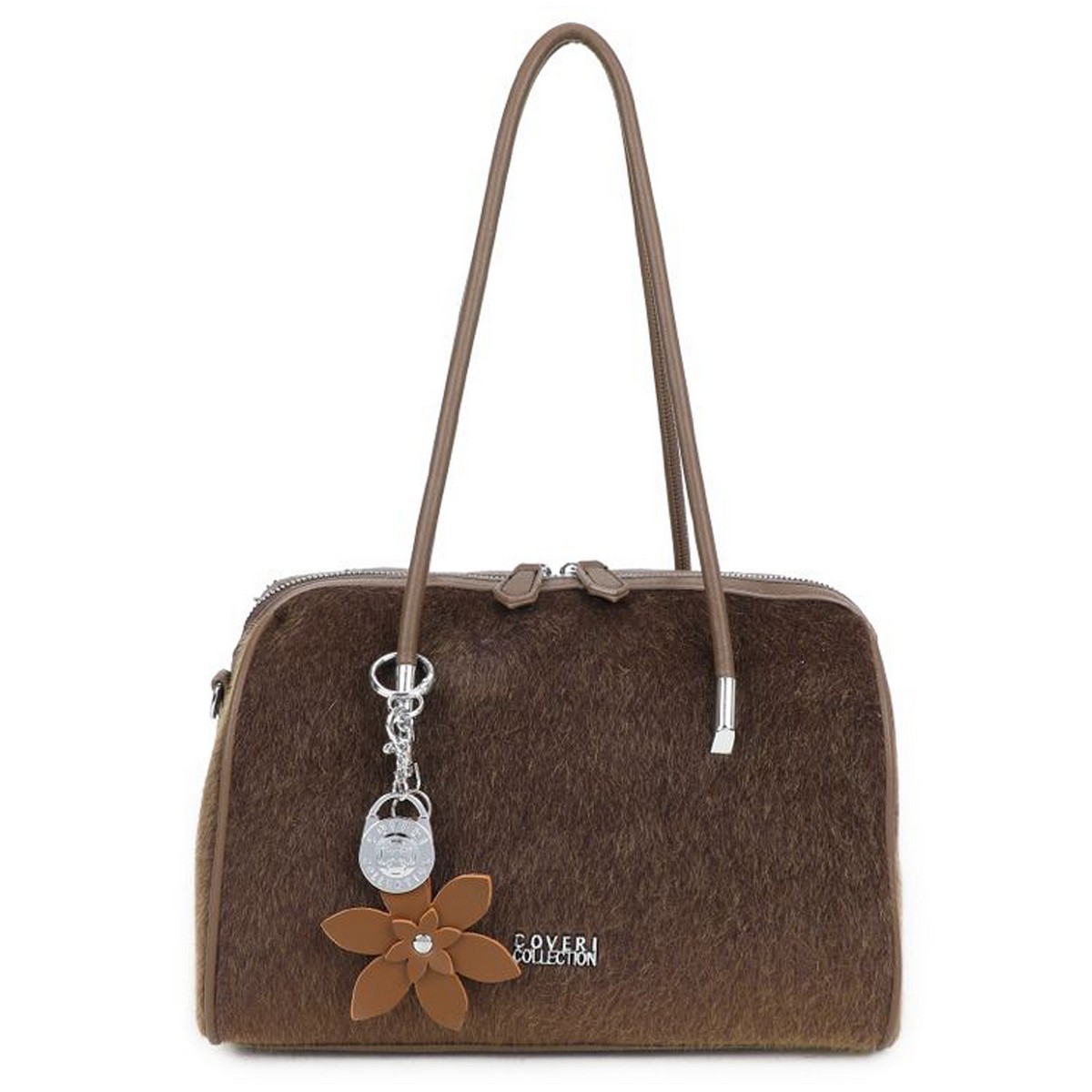 Γυναικεία Τσάντα Coveri με υφή suede-fur και διακοσμητικό charm λουλούδι.Με ρυθμιζόμενο λουρί για χρήση χιαστί ή ώμου.. Διαστάσεις: Πλάτος 29 × Ύψος 19 × Πάτος 16 εκ.