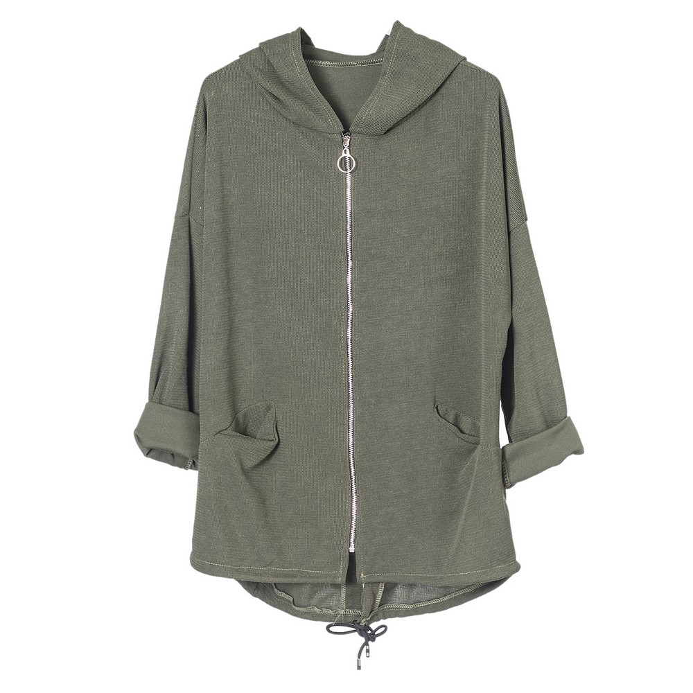 Γυναικεία Ζακέτα ασύμμετρη με φερμουάρ και κουκούλα.Σύνθεση: 95% βισκώζη / 5% ελαστίνη