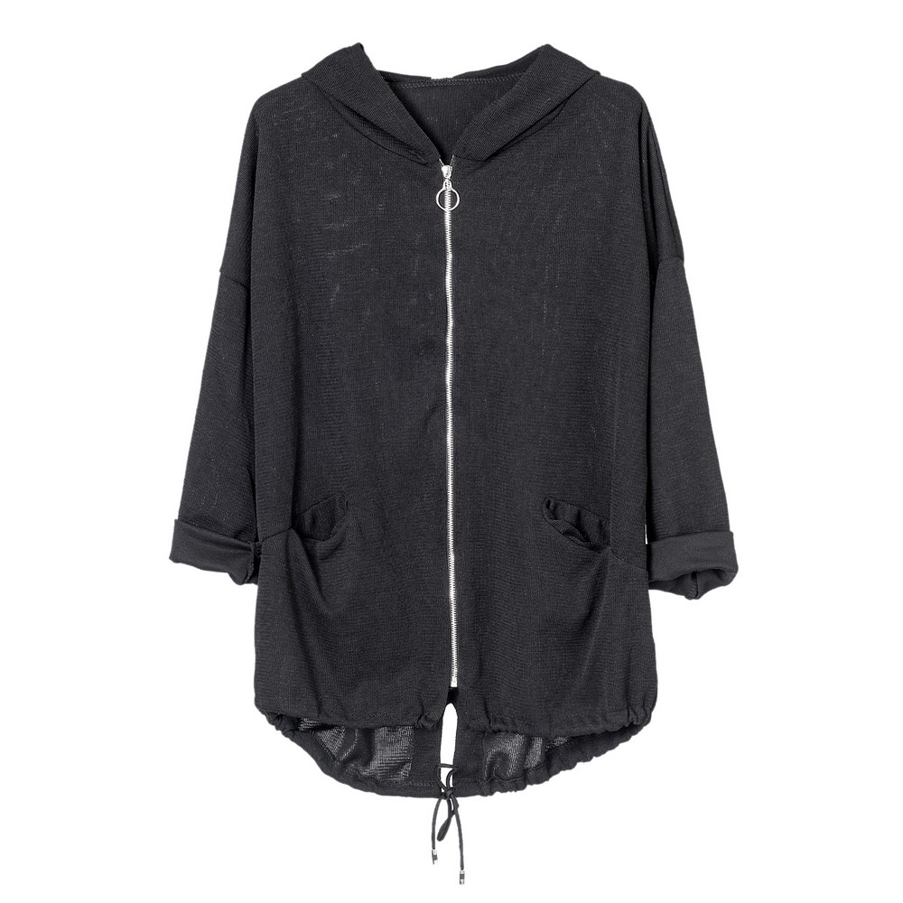 Γυναικεία Ζακέτα ασύμμετρη με φερμουάρ και κουκούλα.Σύνθεση: 95% βισκώζη / 5% ελαστίνη