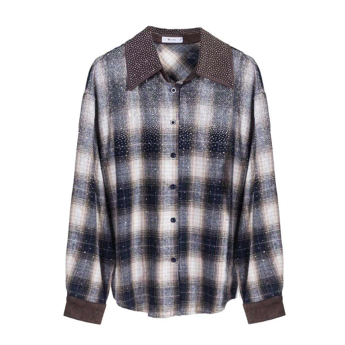 Γυναικείο πουκάμισο με λευκά στρας στο μπροστινό μέρος και τον γιακά Σύνθεση : 65% Βαμβάκι/ 35% Μαλλί