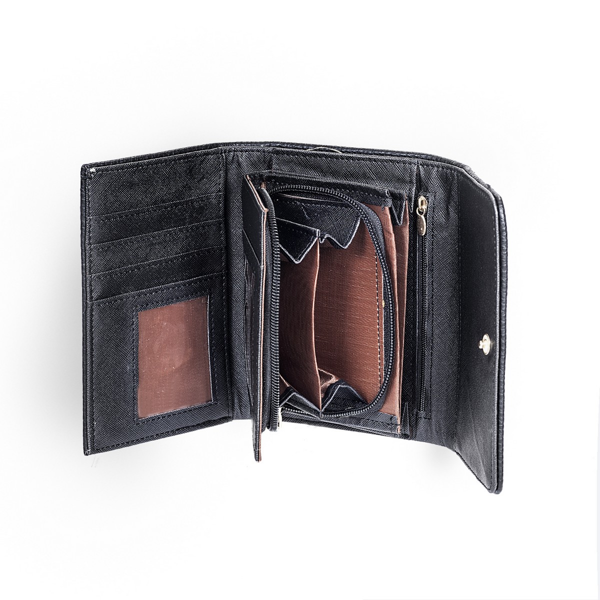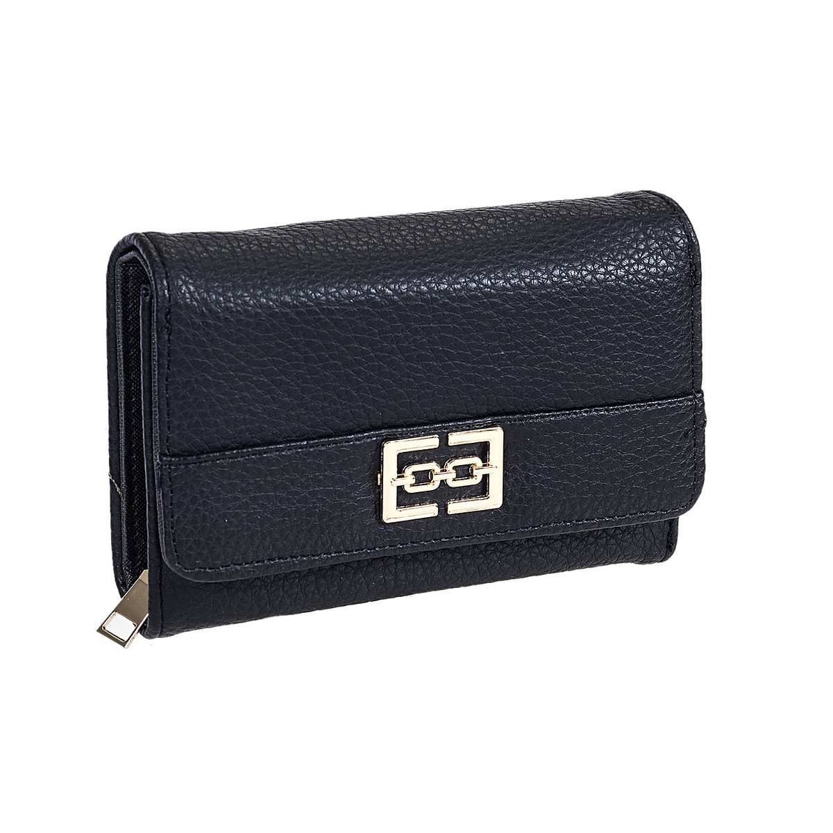 Πορτοφόλι γυναικείο μεσαίο μέγεθος με χρυσό τετράγωνο κούμπωμα ,θήκες για ψιλά,χαρτονομίσματα,κάρτες . Διάσταση: Πλάτος 15,5 Χ Ύψος 10,5