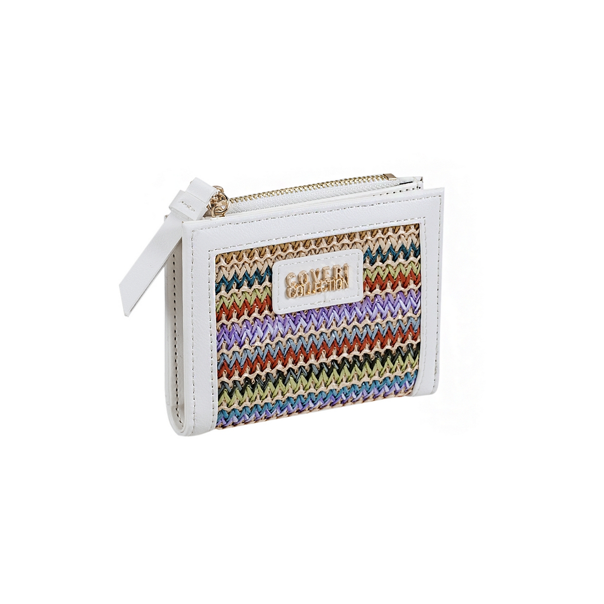 Πορτοφόλι γυναικείο Coveri μικρό μέγεθος δερματίνη και συνθ.ψάθα. Διαθέτει εσωτερικά θήκες για κάρτες, ταυτότητα , χαρτονομίσματα και για κέρματα. Διάσταση: Πλάτος 11.5 Χ Ύψος 9